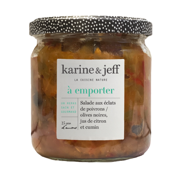Salade aux éclats de poivrons compotés / olives noires, jus de citron et cumin 330 g